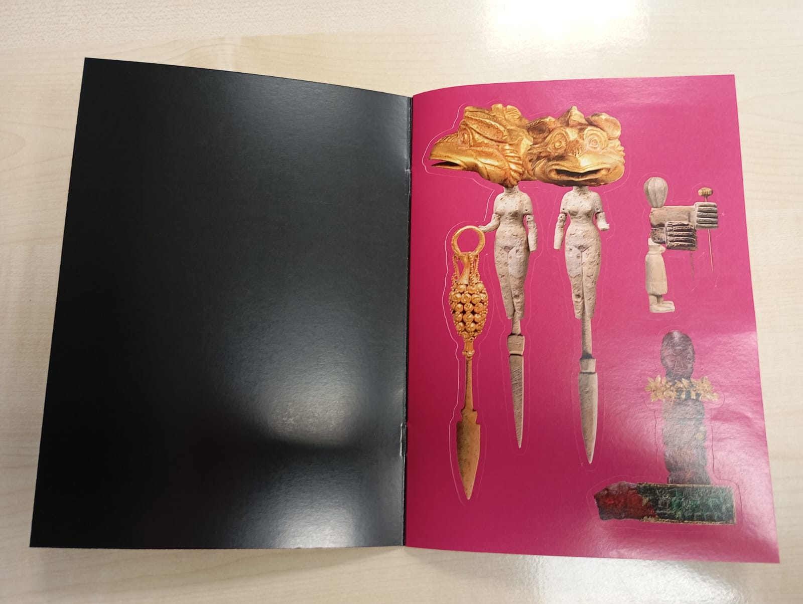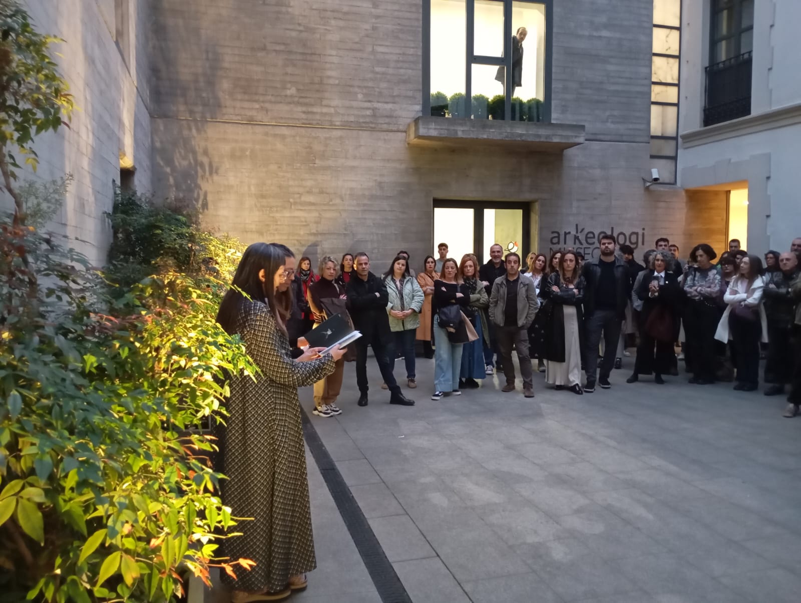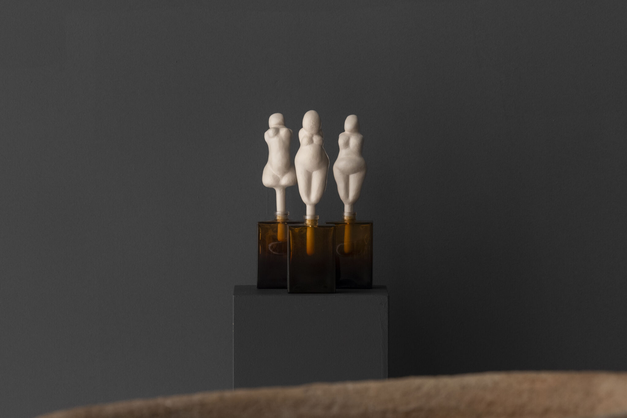 Mabi Revuelta se sumerge en la circularidad del tiempo para reconstruir en el presente los vestigios de la memoria de la Antigüedad. La edad de las diosas ocupa el Museo Arqueológico con genios y diosas híbridas, eternas, en diálogo con el poema Elegía sumeria, de Juan Eduardo Cirlot. Sus seres fantásticos se yerguen sobre restos de lapislázuli; se engarza el granito con el oro, el vidrio contiene el ámbar y se desborda el bronce. Las formas imposibles de sus deidades se balancean entre la lógica anatómica y la fantasía más irreverente. Fragmento del texto escrito por la comisaria Haizea Barcenilla para la publicación de la exposición.
