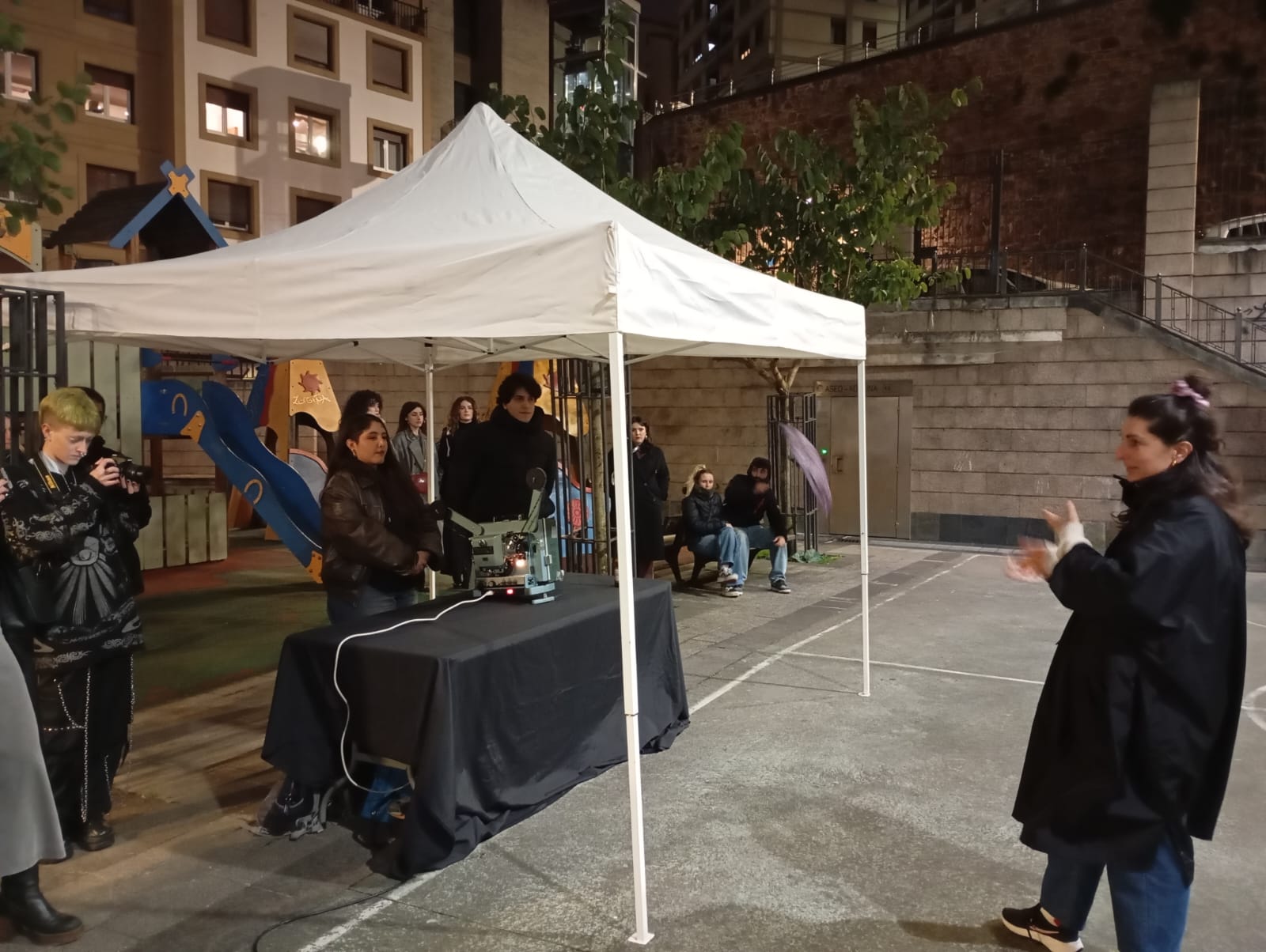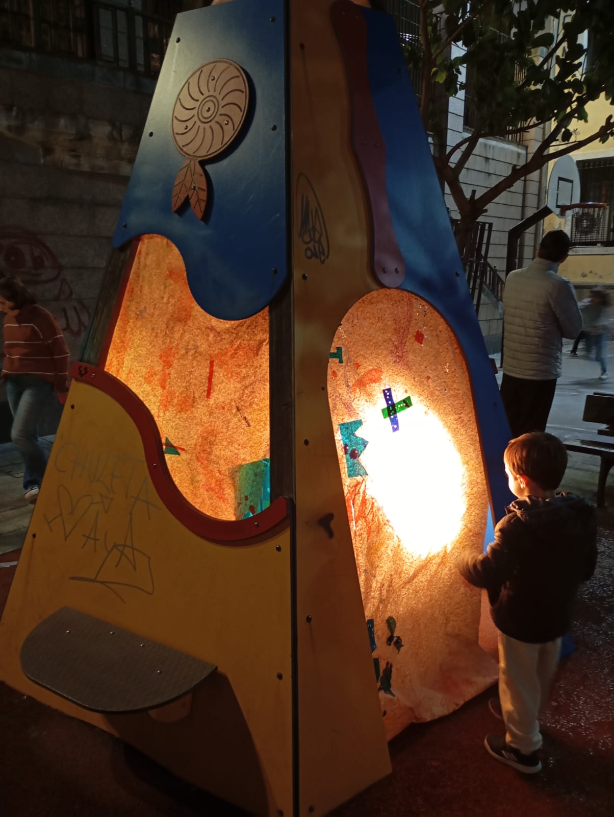 Para el cierre del festival, vamos a convertir los tipis de los columpios en enormes linternas alien. Junto con estudio Gheada, realizaremos un taller para txikis y personas adultas, en el que por equipos, crearemos diferentes collages marcianos. Utilizaremos materiales traslúcidos y acuarelas, para crear los paisajes, sueños y universos que podamos imaginar. Nuestras creaciones cobrarán vida cuando, una vez colocadas sobre las paredes de los tipis, encendamos los focos; y así, estos dibujos se iluminarán al anochecer. ¿Quieres venir con tu familia y amigas? Apúntate antes del viernes 28 de marzo en este email: colectivoant@gmail.com